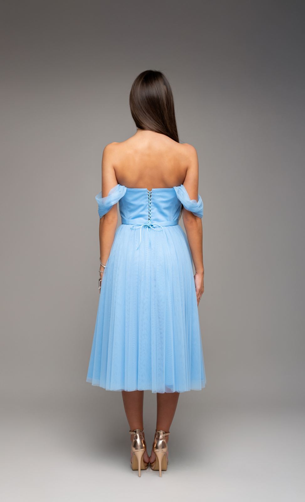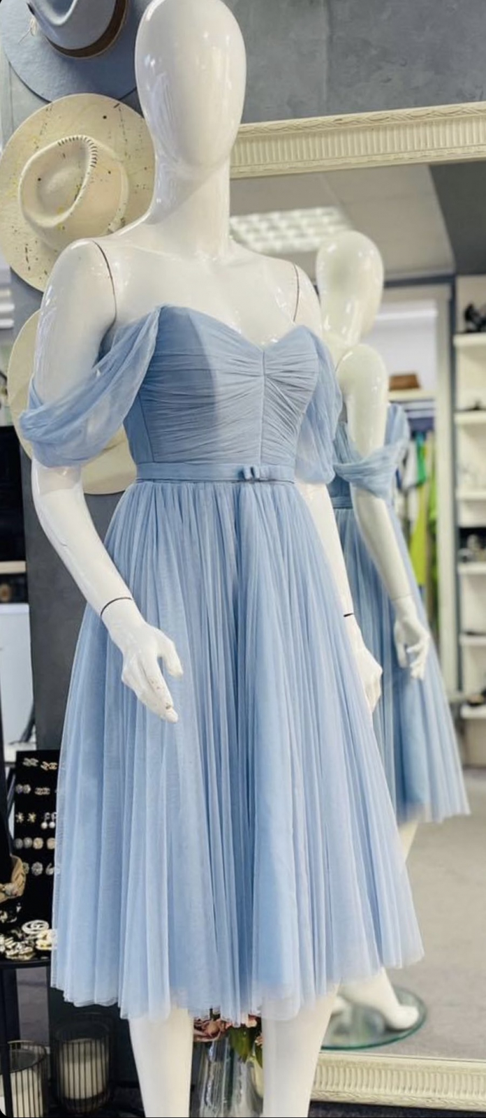 Această rochie scurtă, confecționată dintr-un tul fin și vaporos, este alegerea ideală pentru a adăuga o notă de rafinament și stil oricărui eveniment special. Designul său sofisticat este evidențiat de bustul fronsat, tip corset, care oferă o siluetă deosebit de feminină și flatantă, punând în valoare decolteul. Bretelele delicate, căzute grațios pe umeri, adaugă un plus de eleganță și senzualitate, conturând armonios linia umerilor. Pentru o potrivire perfectă și un confort optim, rochia dispune de un sistem de închidere reglabil la spate, prevăzut cu bride delicate și fermoar. Cu o lungime a fustei de 70 cm din talie, această rochie scurtă avantajează picioarele, conferind o alură modernă și tinerească. Un mare avantaj este posibilitatea de a o comanda în orice culoare, permițându-ți să alegi nuanța ideală care să se potrivească perfect evenimentului și stilului tău personal. Este alegerea perfectă pentru petreceri, baluri, nunți de zi sau alte ocazii unde dorești să te simți specială și elegantă.